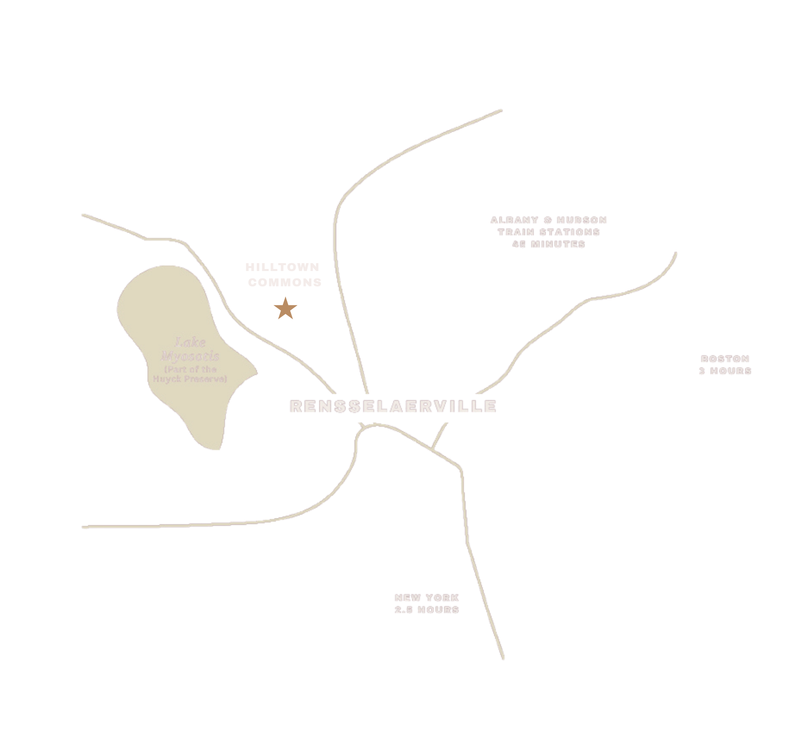 Located in New York’s Upper Hudson Valley, Hilltown Commons sits between Lake Myosotis, a no-wake lake in the Huyck Preserve, and Rensselaerville, a charming hamlet listed on the National Register of Historic Places.