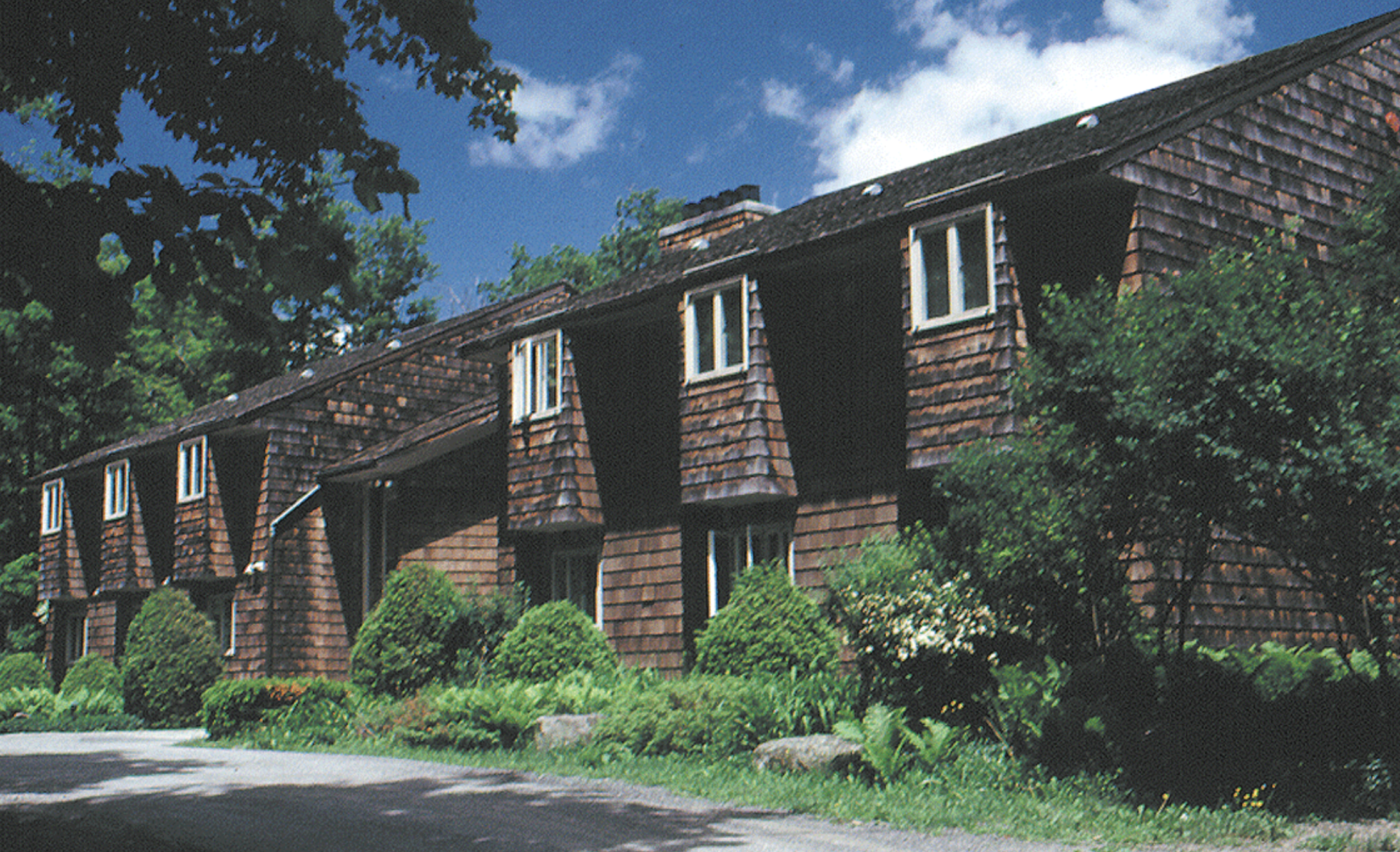 Straus is our largest residence, with 24 guest rooms. The lower lounge opens to an outdoor patio with a firepit and houses the Wisdom Roots Yoga studio, while the first-floor lounge features a spacious deck overlooking the woods. Straus is ideal for groups who want to meet and stay under the same roof.